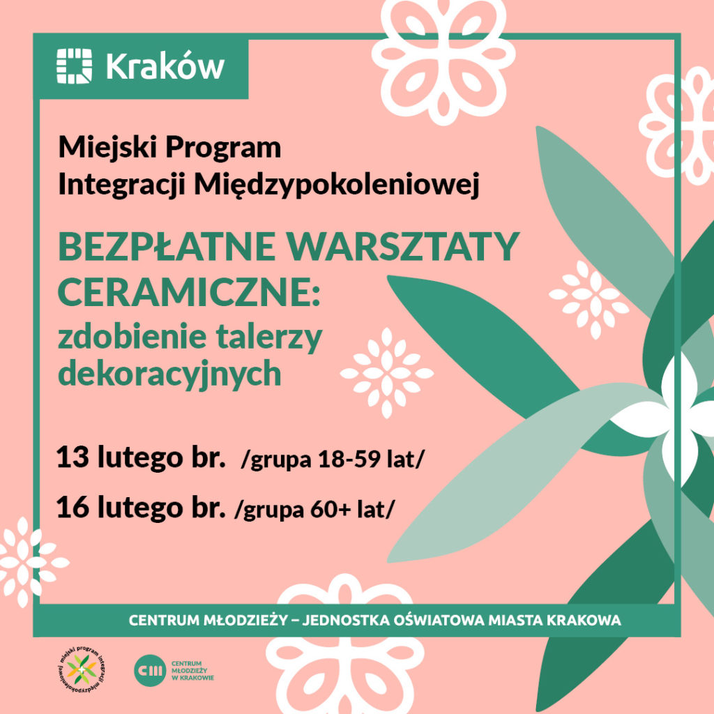 Z kolei 16 lutego br. (poniedziałek) w godz. 11:00-13:00 na warsztaty zapraszamy seniorów (60+ lat) (zapisy od 6 lutego br. od godz. 9:00 przez formularz elektroniczny).